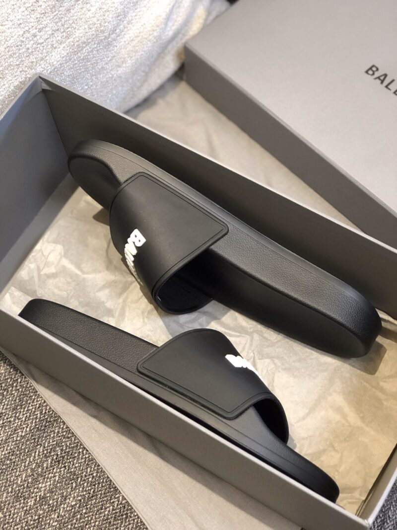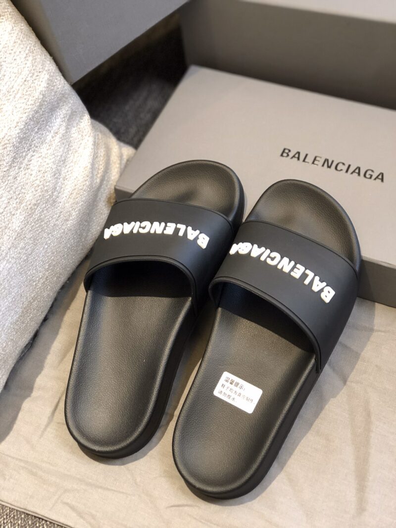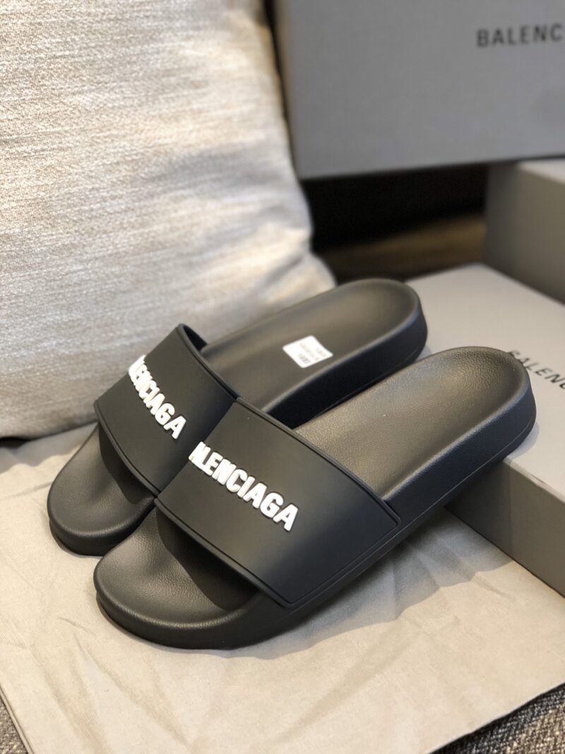 De Balenciaga Pool slippers zijn een stijlvolle en moderne keuze voor elke gelegenheid. Deze slippers zijn gemaakt van hoogwaardig rubber en hebben een comfortabele, voorgevormde zool die ondersteuning biedt bij elke stap. De brede band is versierd met het iconische “Balenciaga” logo, wat zorgt voor een luxe en opvallende look. Perfect voor een ontspannen dag bij het zwembad of een casual outfit, voegen de Balenciaga Pool slippers een vleugje eigentijdse mode toe aan je zomergarderobe.
