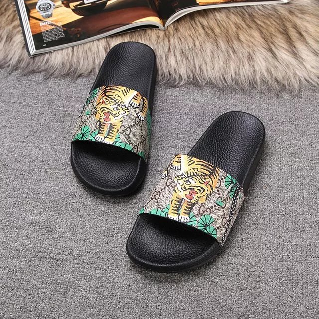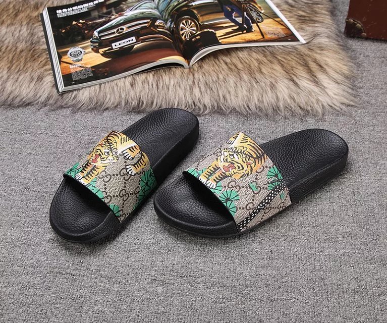 De Gucci Bengal Tiger Slide slippers vallen op door hun gedurfde tijgerprint en luxe comfort. Gemaakt van duurzaam rubber, bieden ze een comfortabele pasvorm en stevige grip. Perfect om elke casual look een speelse Gucci-touch te geven.